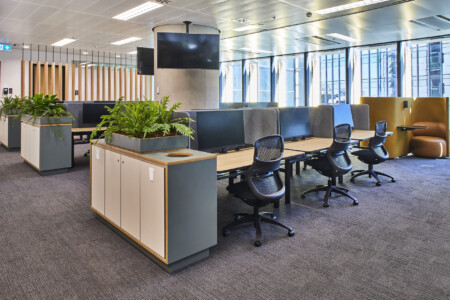 In collaboration with Capezio Copeland, Interior Engineering helped to create this high-end workspace for AUSTRADE from a standard open floor layout. Working in the exclusive Barangaroo precinct in the International Tower 3 building, we were challenged with reworking the services to accommodate the heavily populated areas of the floor and extensive meeting spaces.
