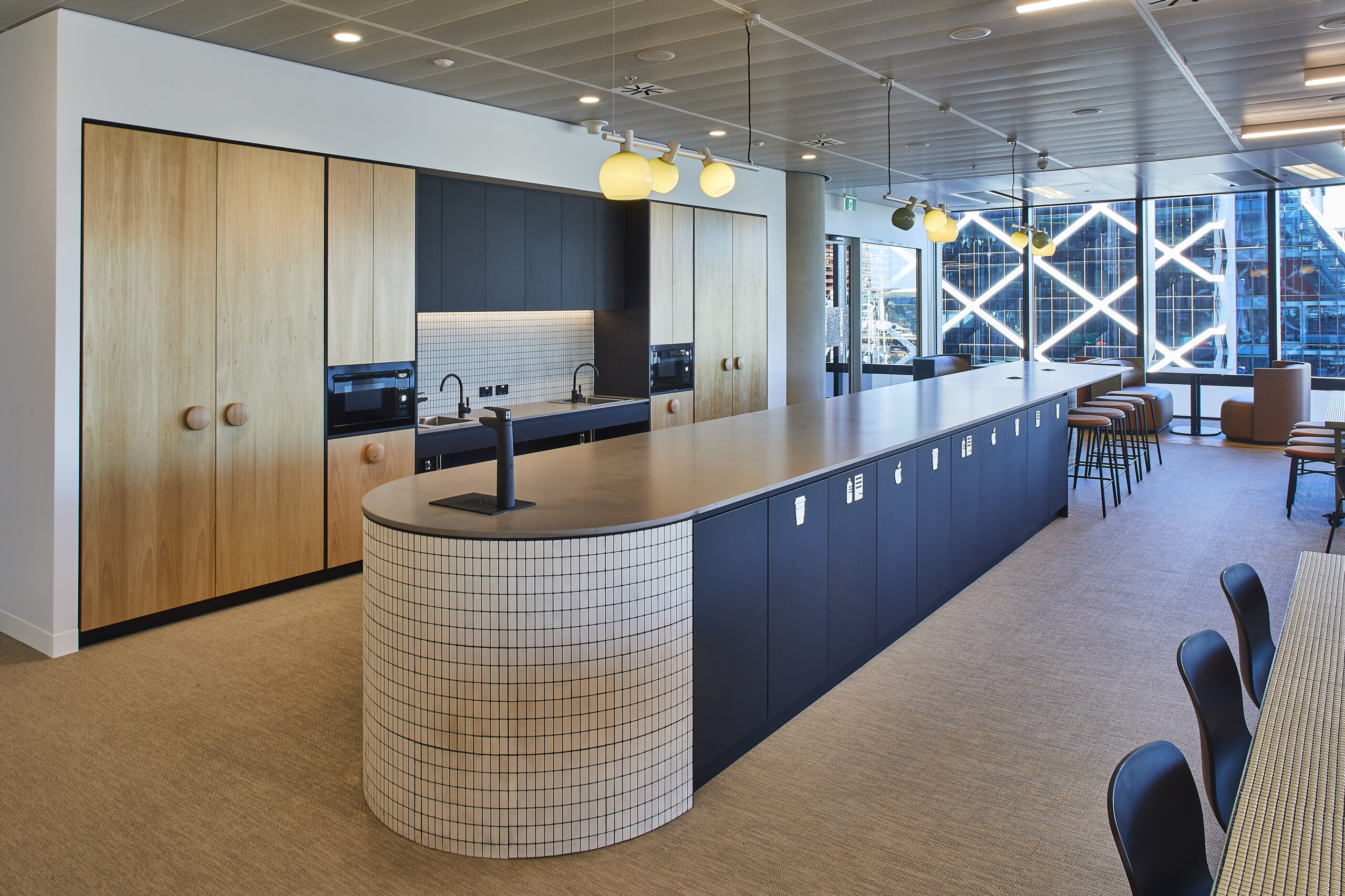 In collaboration with Capezio Copeland, Interior Engineering helped to create this high-end workspace for AUSTRADE from a standard open floor layout. Working in the exclusive Barangaroo precinct in the International Tower 3 building, we were challenged with reworking the services to accommodate the heavily populated areas of the floor and extensive meeting spaces.