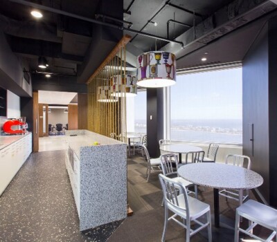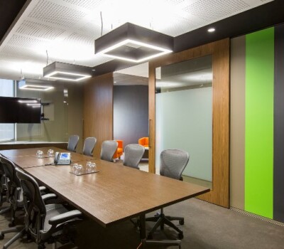 Inspired by the talents of designer Bernard Penhey of Maxwell Penhey Architects, Interior Engineering integrated the services designs into the feature areas throughout the front of house and throughout the remainder of the back of house office and open areas. The front of house areas included stepped ceiling heights of flat plaster and perforated plaster ceilings and the removed ceiling in the staff café. Fully automated lighting control systems were integrated in line with the Brisbane office policy to maximise energy efficiency of the lighting system.