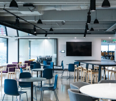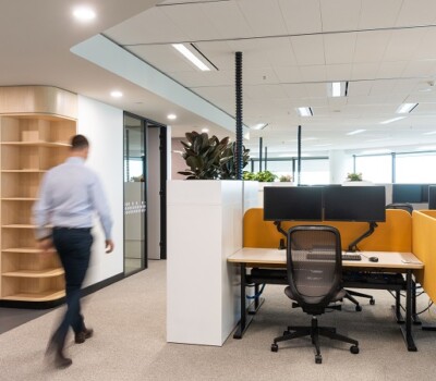 and BVN Architecture, this required attention to detail and design coordination to achieve the outcome. Of particular highlight was the use of reflective barrisol panels in the lift lobby and reception/breakout perimeter which had services designed around to complement it.