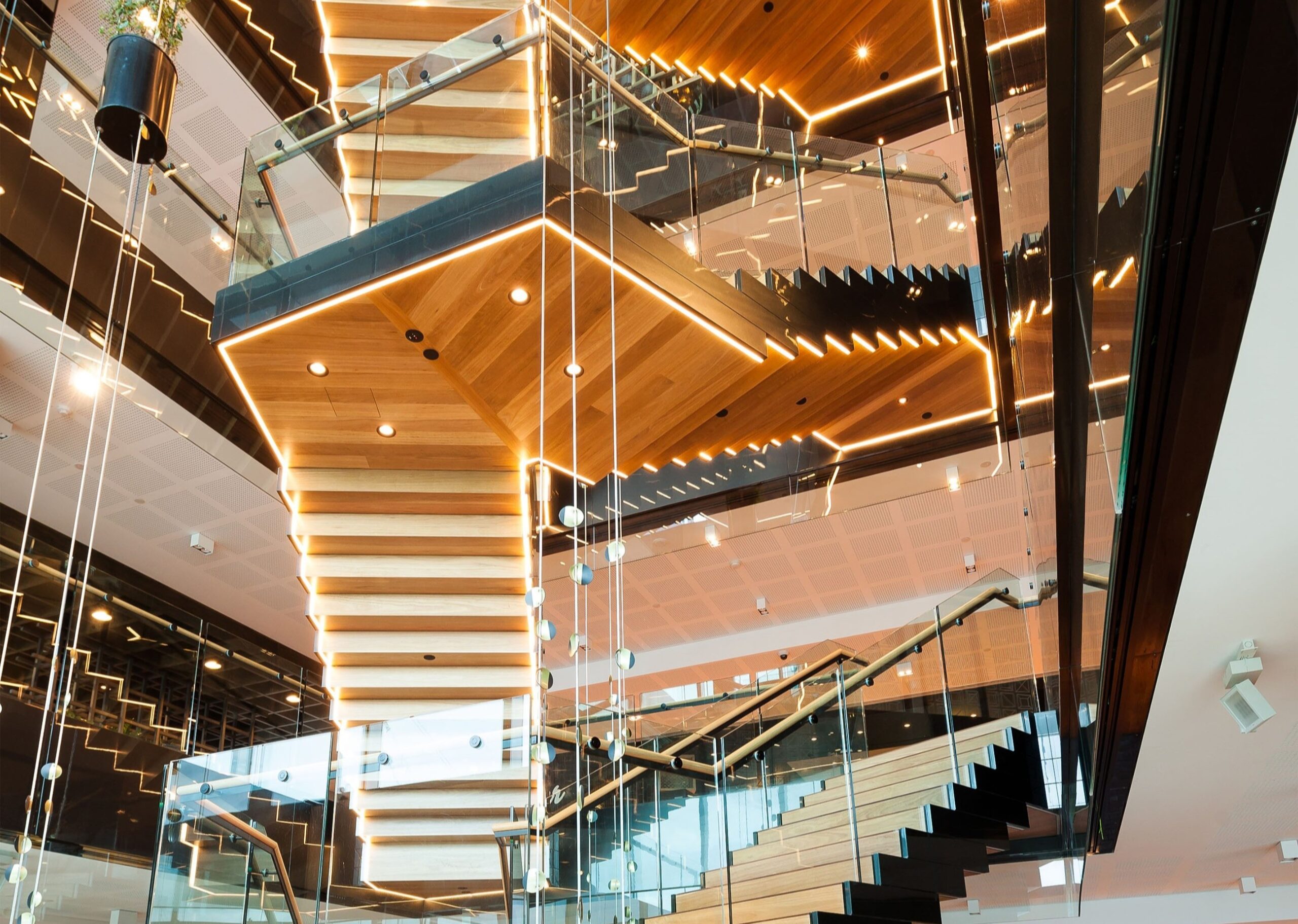 Interior Engineering were engaged for the mechanical, electrical, communications, fire and hydraulic services design associated with the relocation of the Bank of Queensland head office into a new office building at 100 Skyring Terrace. Although the fit out was not integrated into the base building construction, close coordination with the developer (FKG) was required to ensure the base building services met the BOQ requirements. Part of this process included an internal stair well connecting 5 floors, a designated kitchen exhaust riser and additional power and condenser water infrastructure necessary for a their server room. For the five floor internal stairwell, the fire engineered solution was developed by Fire Check, while the associated sprinkler and smoke management system was designed by Interior Engineering.