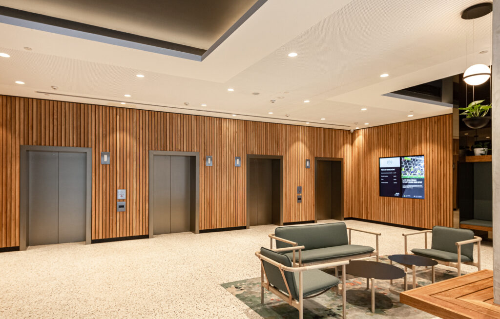We are excited to announce the completion of the 189 Grey Street Lobby and End-of-trip (EOT) refurbishment. The EOT in particular provided some unique challenges with very limited space and height clearances available to accommodate all services to provide a functional and elegant facility for the building tenants. Working collaboratively with the architect, builder and client from the initial design right through to final completion was a key component to the successful completion of this project. With Mirvac as the Client, Edge Project Management, Conrad Gargett (Architects) and ATG (Builders) we are proud having been part of this great team effort in delivering this project on time and within budget.